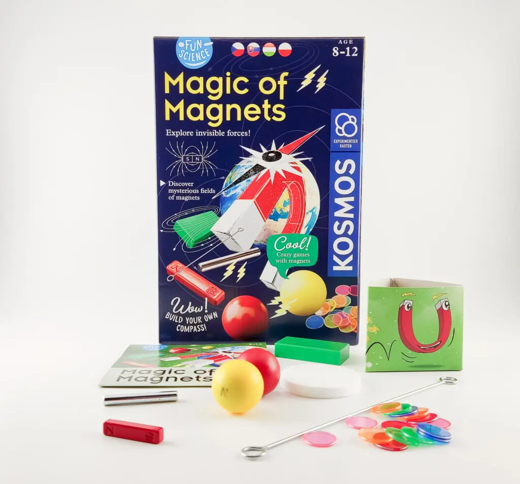 Z czego wynika, że Ziemia wytwarza pole magnetyczne? Dlaczego niektóre przedmioty można namagnetyzować? Jak działają tzw. magnoreceptory, dzięki którym ptaki wędrowne mogą odnaleźć drogę między legowiskami a zimowiskami? Na te i wiele innych pytań odpowiedzi znajdziecie razem z dziećmi podczas wykonywania eksperymentów, których dokładny przebieg i opis znajdziecie w zestawie “Świat Magnesów” od wydawnictwa Piatnik.