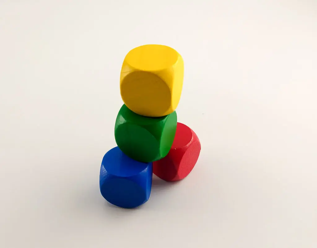 Do łatwego wykorzystuje się karty z pomarańczową ramką — bąbelki zostały na nich ułożone zgodnie z wielkością. Jeśli chcecie zagrać w “Bubble” z jeszcze młodszymi dziećmi niż sugeruje to wydawca, proponujemy pomóc im w ułożeniu szeregu liczebników, które wypadły na kostkach. Ich samodzielne zadanie polegać więc będzie na znalezieniu karty z kolorowymi bąbelkami (ułożonymi już malejąco) do liczb wyrzuconych na kostkach.