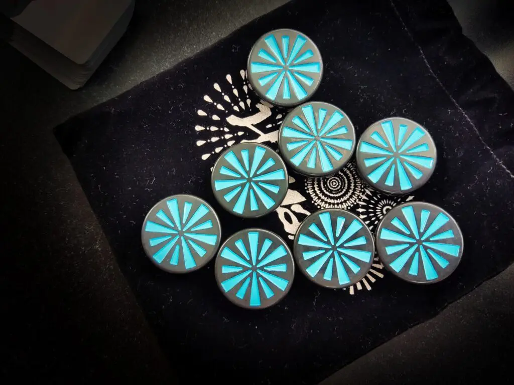 - umieścić 8 żetonów wskazówek na woreczku,