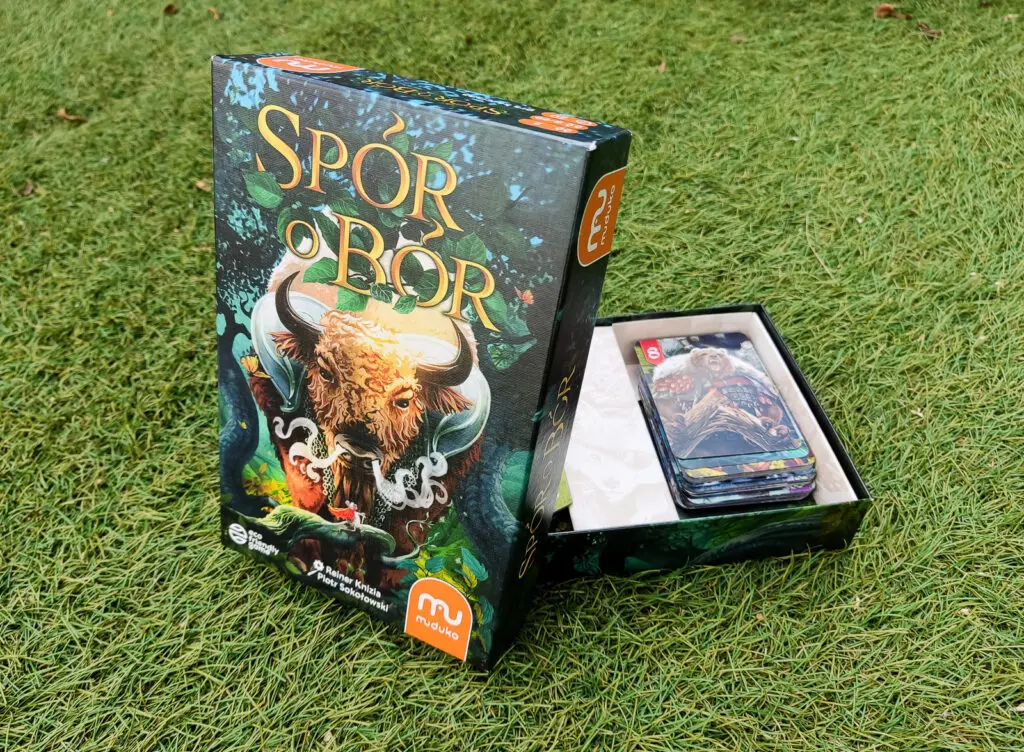Na koniec — tzw. wisienka na torcie. Spójrzcie na estetykę wydania (grubsze karty, dobry papier, materiały spełniające wymogi rygorystycznej europejskiej normy En-71) oraz…. szatę graficzną! Szczegóły, drobiazgi i magia koloru. Jest trochę mrocznie — to przecież spór w dzikiej Prapuszczy). Jest urokliwie (nie mylić z uroczo) — jak na rodzimy polski bór przystało. Jest dynamicznie — charakterni i doskonale zantropomorfizowani bohaterowie “żyją” na kartach.