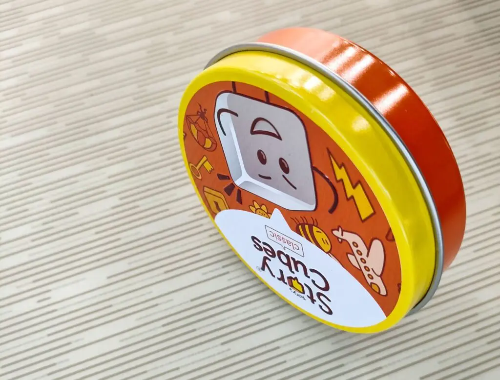 “Story Cubes” mieści się w małej metalowej, okrągłej puszce. W skład gry wchodzą: