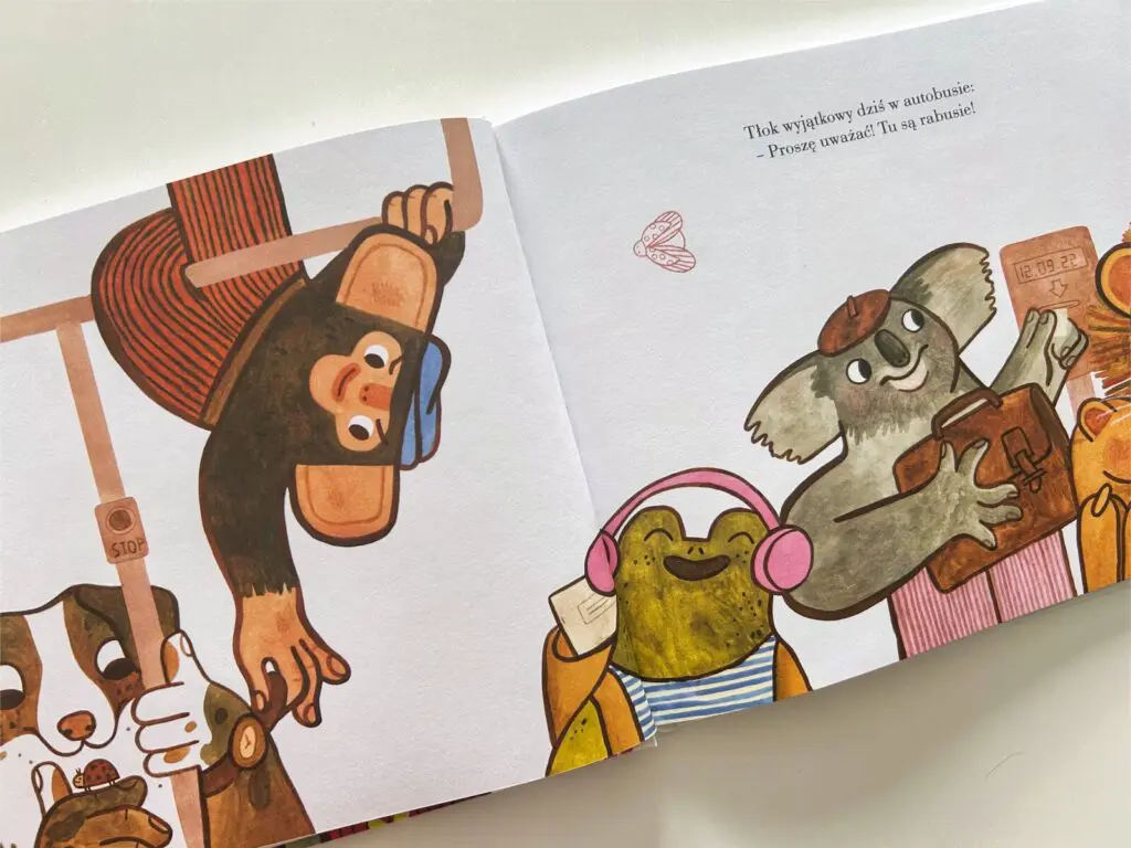 Aleksandra Badura stworzyła wizualną ucztę dla oczu młodych czytelników. Ilustracje w książce „Łapać złodzieja!” są pełne kolorów i dynamiki, choć na białym tle, idealnie oddając zawirowania i tempo pościgu. Każda strona to nowe, zaskakujące sceny, które ożywają dzięki starannie dopracowanym obrazkom. Zwierzęta są przedstawione z dużą dozą humoru, co dodaje książce lekkości i sprawia, że jest jeszcze bardziej atrakcyjna dla dzieci.