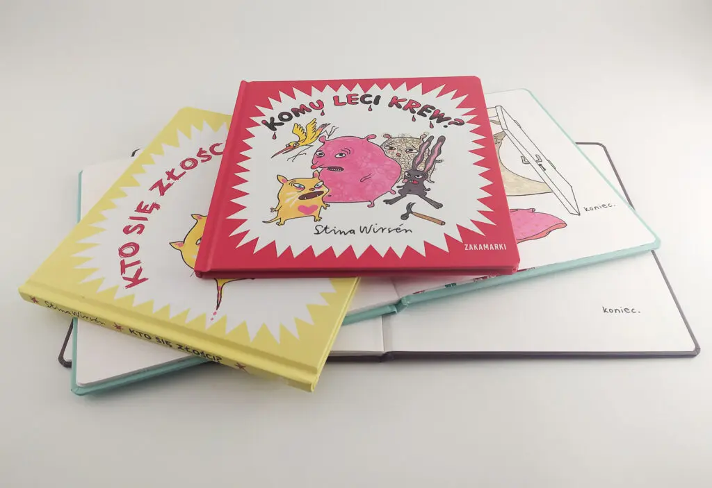 “Czyje spodnie?”, “Komu leci krew?”, “Kto decyduje?” i “Kto się złości?” Stiny Wirsén (w tłumaczeniu Katarzyny Skalskiej) zostały wydane nakładem Wydawnictwa Zakamarki.