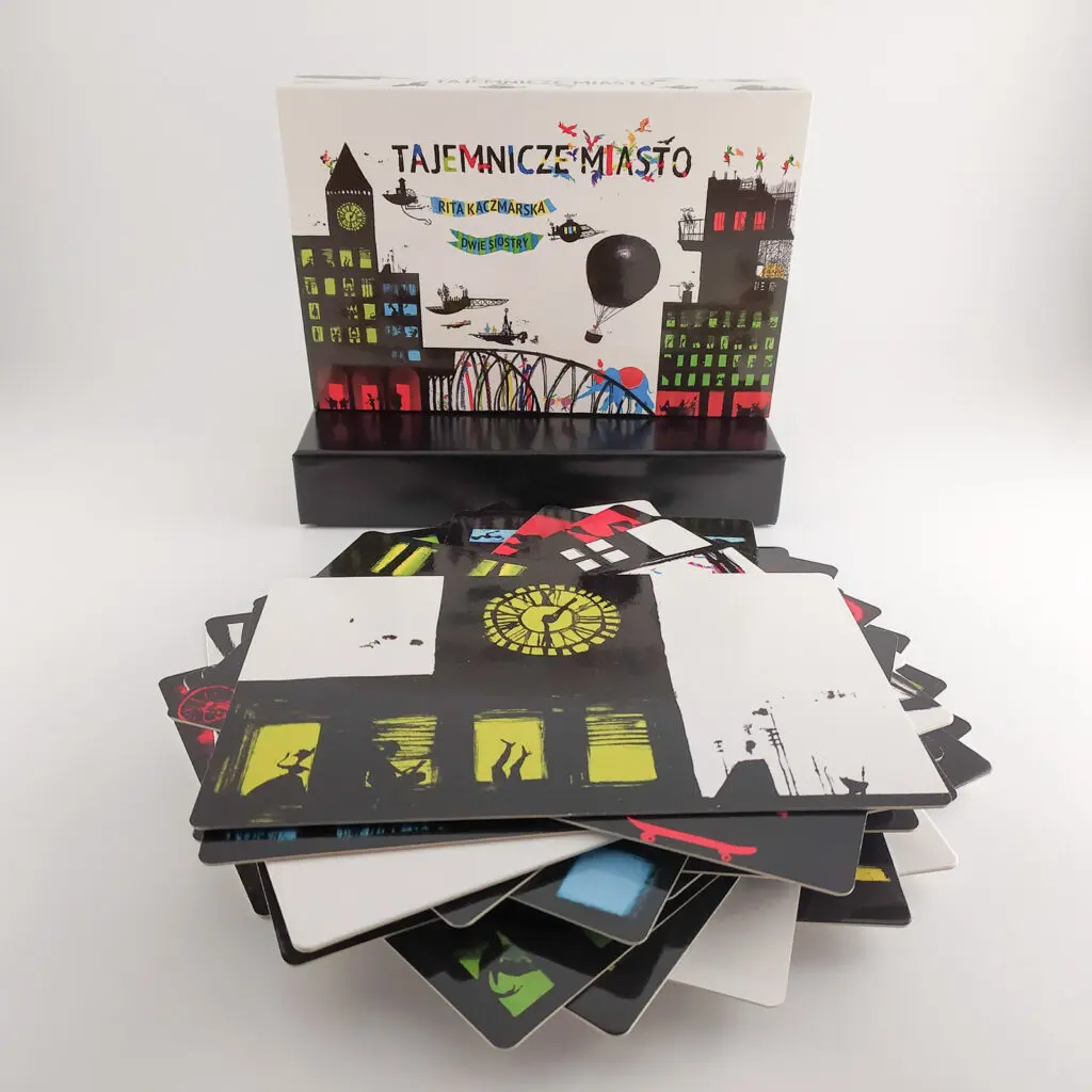 Tajemnicze miasto to zestaw 25 dwustronnych, grubych, tekturowych kart o wymiarach 21 x 13 centymetrów, tym samym to zbiór 50 ilustracji przeznaczonych, według sugestii wydawcy, dla dzieci od 4 roku życia. Doskonale sprawdzają się również wśród młodszego grona odbiorców, jak i niemowlaków.