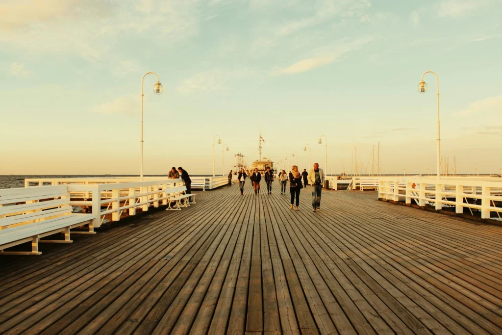 Sopot łączy w sobie uzdrowiskowy spokój z miejską energią, oferując zarówno plażowe atrakcje, jak i kulturalne perełki ukryte w bocznych uliczkach. To miejsce, gdzie dzieci mogą jednocześnie bawić się w piaskownicy na plaży i odkrywać średniowieczne grodzisko, pływać w aquaparku i spacerować po najdłuższym drewnianym molo w Europie.