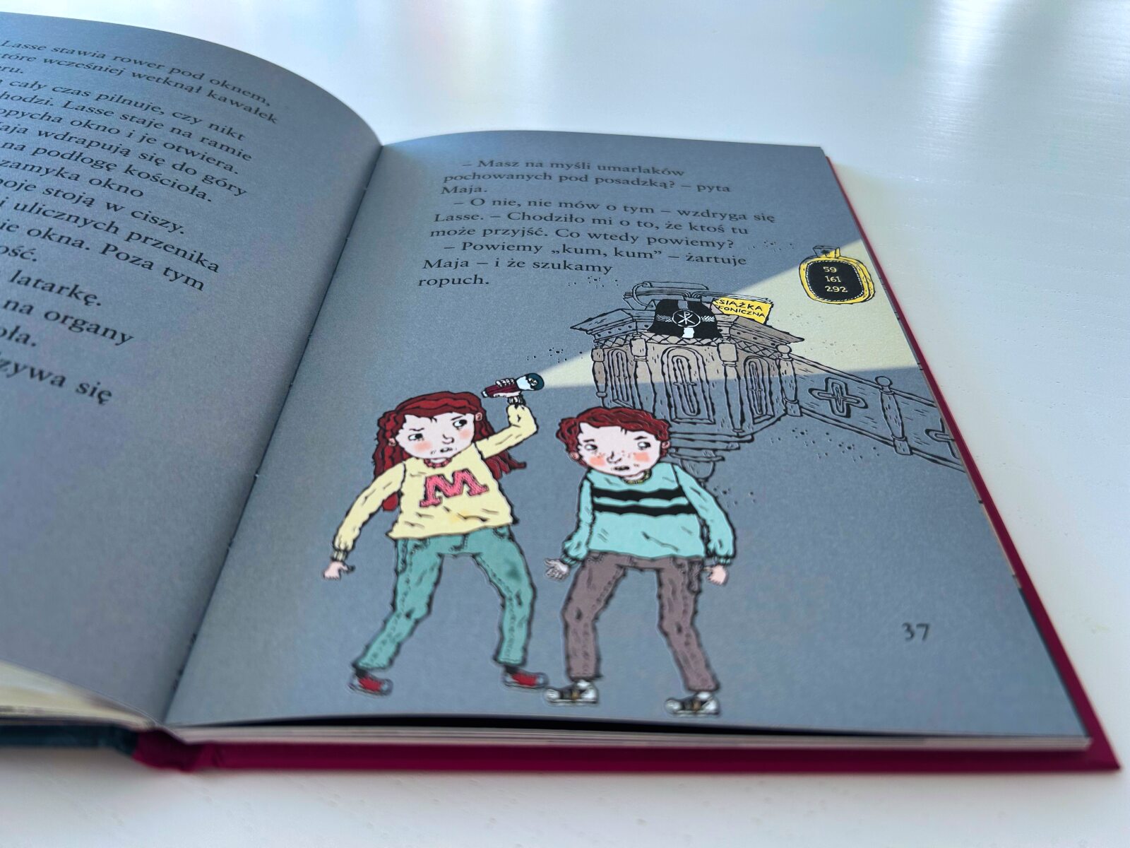 “Tajemnica kościoła” Martina Widmarka to kolejna, 32. część bestsellerowej serii “Biuro Detektywistyczne Lassego i Mai”, która niezmiennie zachwyca młodych czytelników. W najnowszej odsłonie przygód ulubionych detektywów z Valleby, autor zaprasza nas na uroczystość przejścia na emeryturę wieloletniego pastora. To, co miało być podniosłą ceremonią, szybko przeradza się w zagadkę kryminalną, gdy tajemnicze incydenty zaczynają zakłócać przebieg wydarzenia, a z zakrystii znika cenny przedmiot. Czy ktoś celowo sabotuje uroczystość? Lasse i Maja ruszają do akcji, podejmując nocne śledztwo wśród kościelnych ławek!