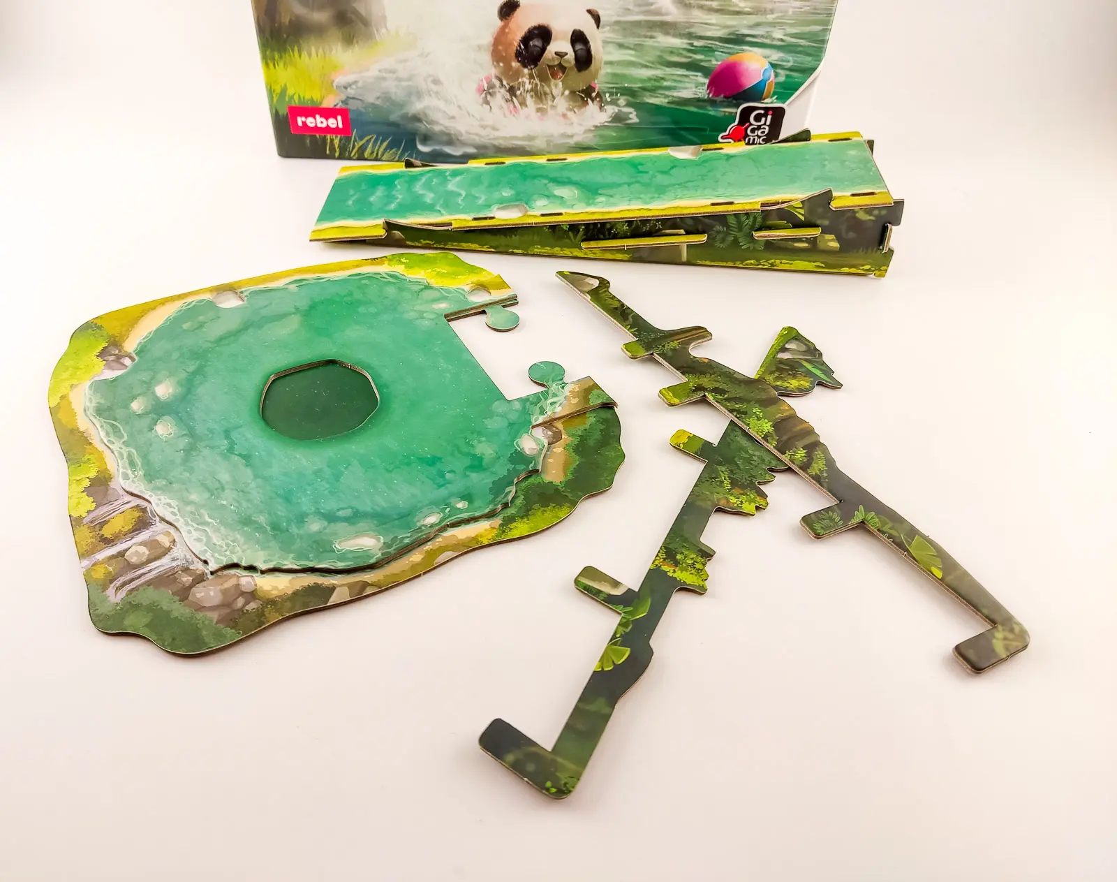 Przygotowanie rozgrywki polega na szczepieniu planszy jeziora i rzeki (opcjonalnie zamontowaniu barier wzdłuż rzeki – to ułatwienie dla mniej wprawionych graczy), umieszczeniu żetonów kół ratunkowych w pobliżu toru oraz żetonu żółwicy na początku toru, a także ułożeniu 12 płytek ze zwierzętami w siatce o wymiarach 4 na 3 płytki. Przed każdym graczem musi znajdować się plansza z żetonami piłek na wyznaczonych dla nich miejscach.